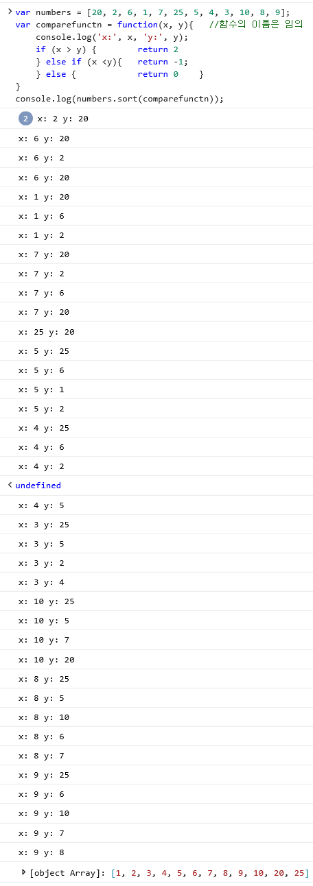 Object는 모든 객체의 공통적인 부모이기 때문에 19행에서처럼 Array 라는 객체를 생성할 때에도 Array는 내부적으로 부모인 Object를 상속받는다. 따라서 Array를 통해서 만들어진 객체는 a.toString()과 같이 Object에 정의 되어 있는 prototype.toString 메소드를 사용할 수 있게 되는 것이다.