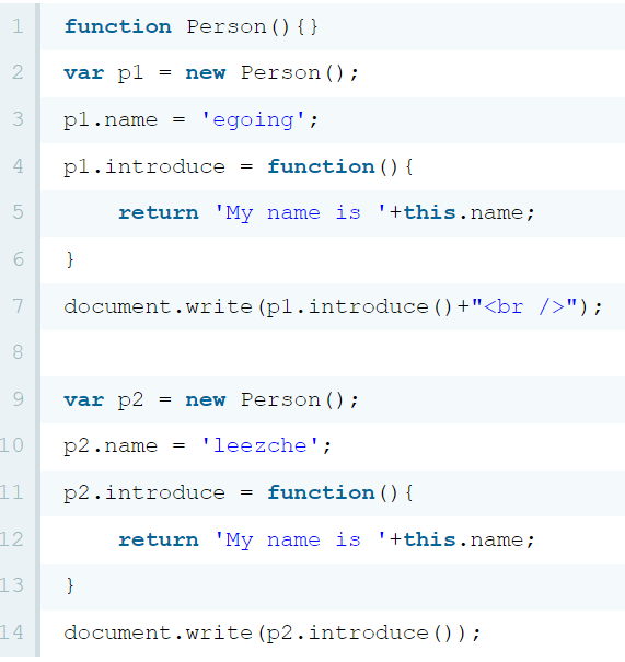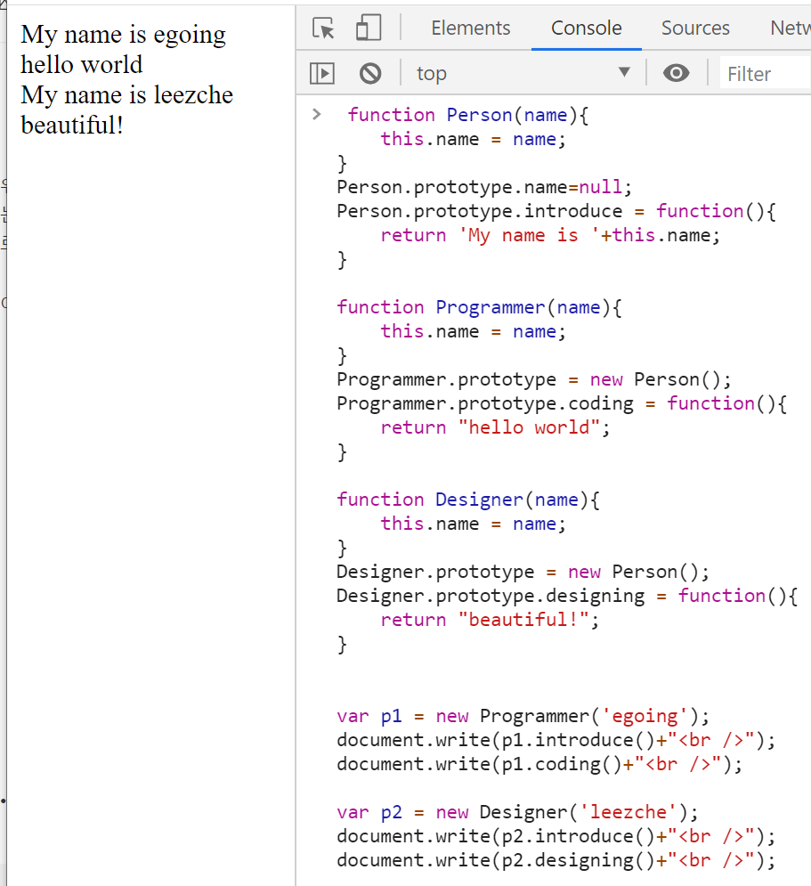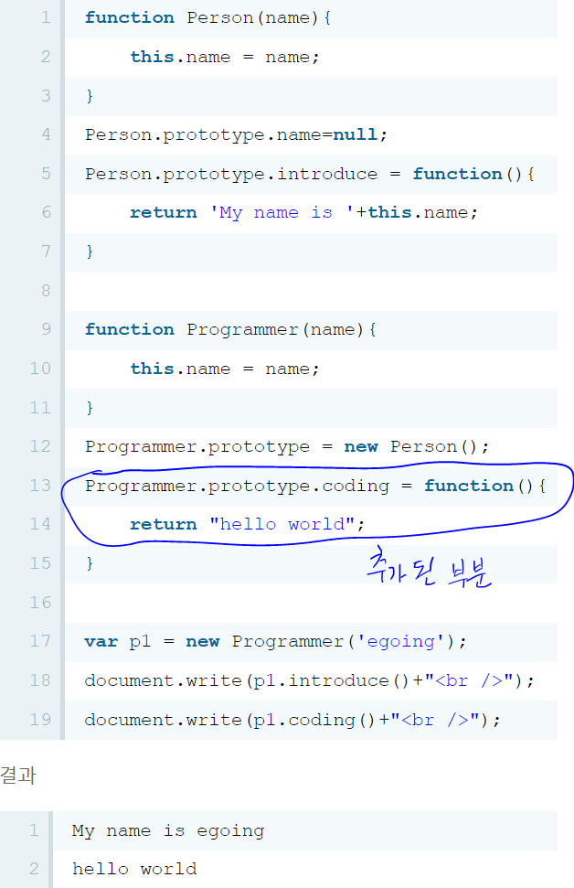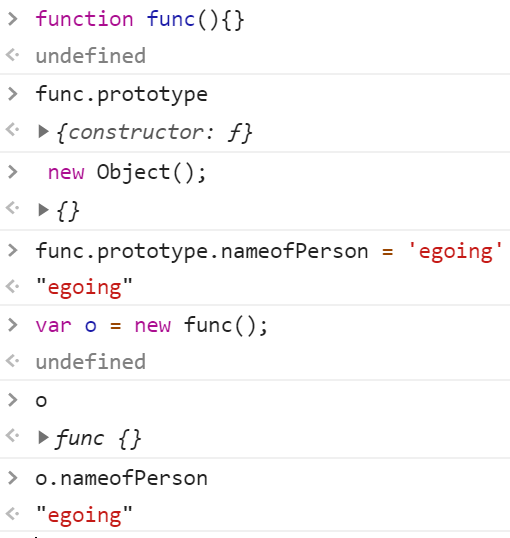 어떤 메소드가 prototype의 소속이라는 것은 new Object(); 라고 생성자함수를 실행시키는 순간, 객체를 만드는데 그 생성자의 prototype이라고 하는 특수한 property에 저장되어 있는 객체를 원형으로 하는 객체가 생성되는 것이다.