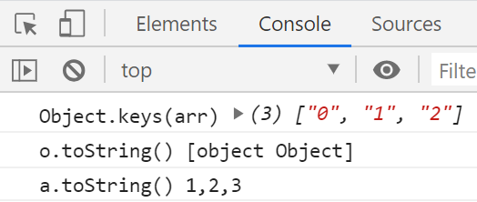 위의 코드를 보면 prototype이 있는 것과 없는 것은 호출방법이 다르다. prototype이 있는 것은 16, 19행과 같이 먼저 객체를 만들고 a.toString() 과 같이 메소드가 마치 자신의 메소드인 것처럼 호출하지만, prototype이 없는 것은 Object.keys(arr) 와 같이 인자로서 전달하는 방식으로 사용한다.