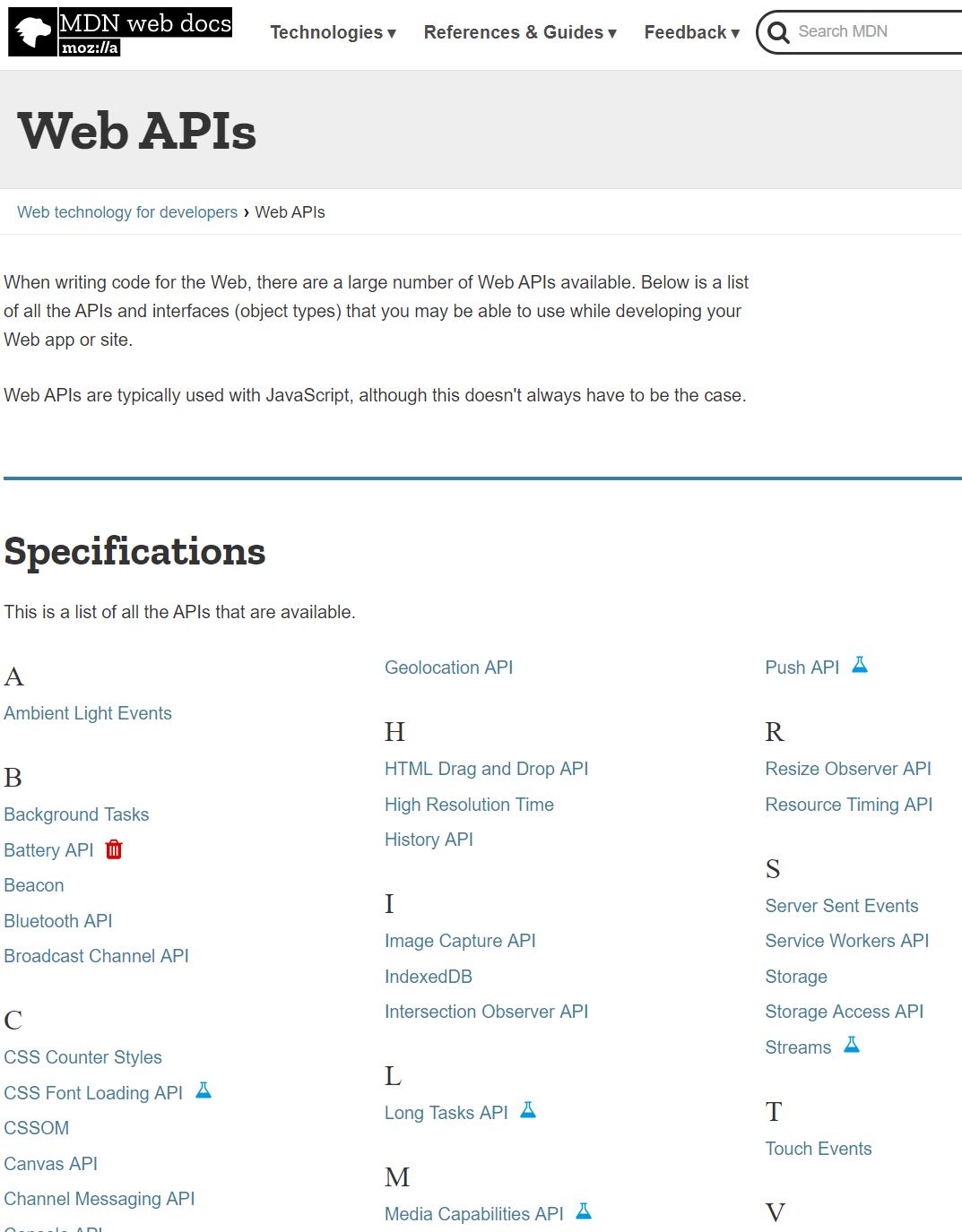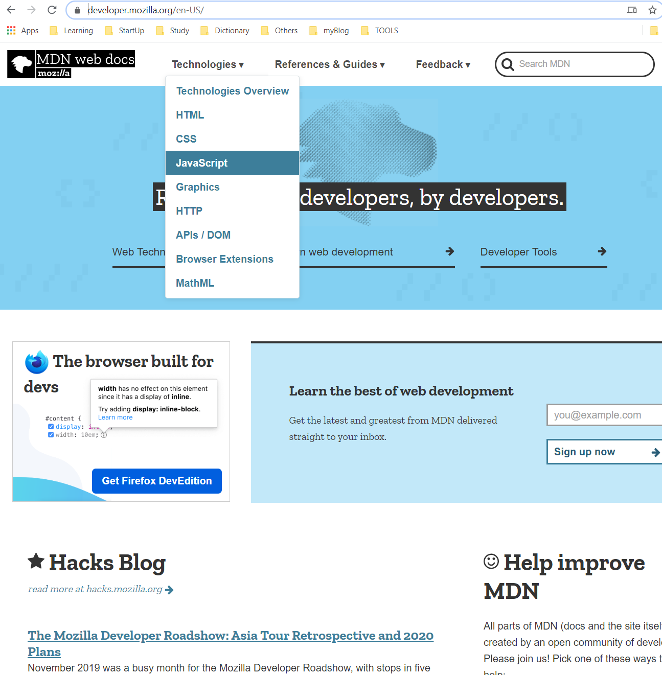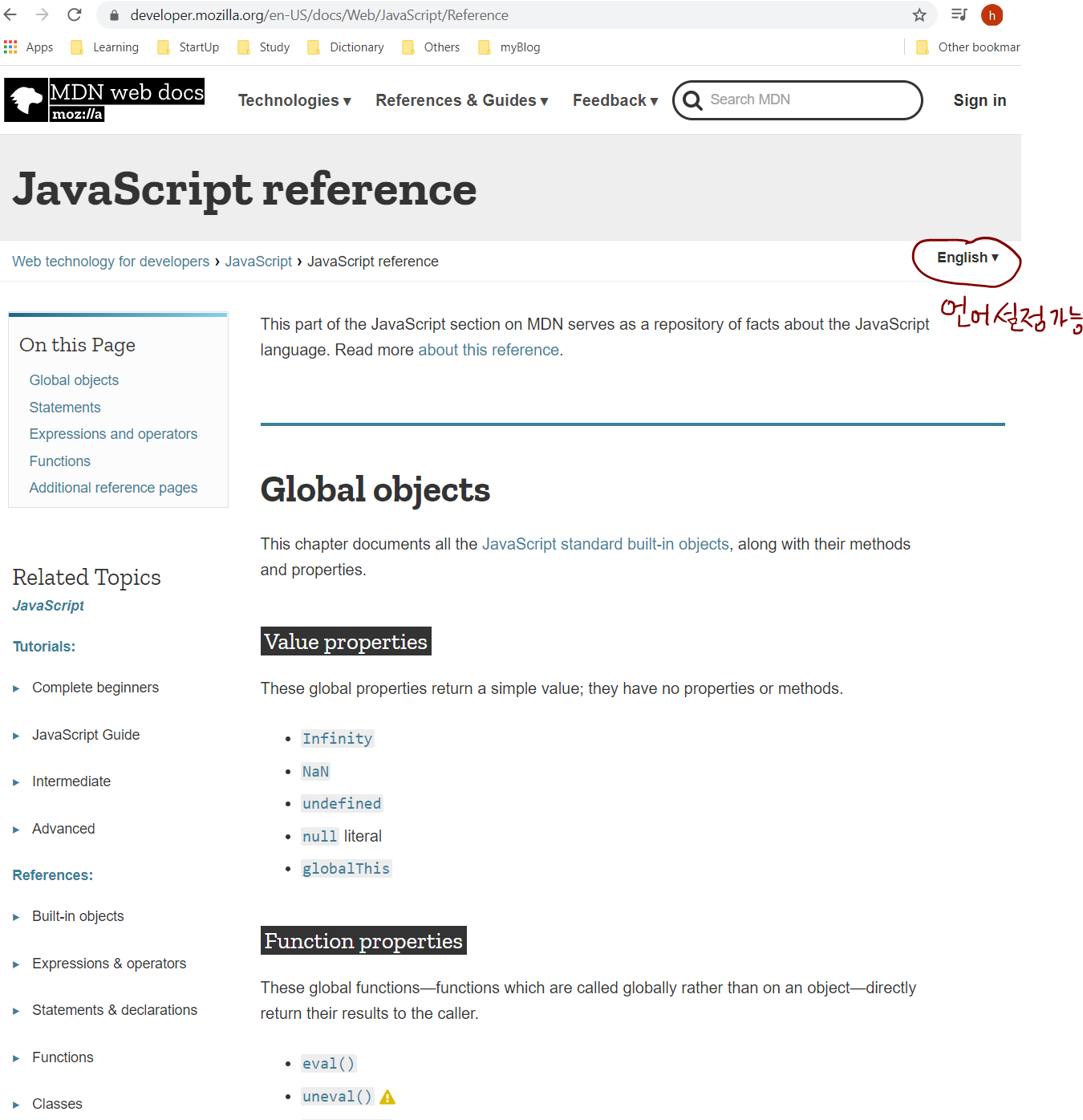 Mozilla Developer 홈페이지:https://developer.mozilla.org/en-US/