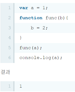 함수 func의 파라미터 b로 전달된 값은 객체 a이다 (b = a). 그리고 3행에서는 b를 새로운 객체로 대체하고 있으며 그것은 b가 가리키는 객체를 변경하는 것이기 때문에 객체 a에 영향을 주지 않는다.