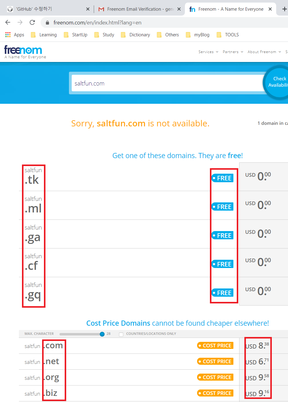 원래 도메인은 1년에 몇 만원 하는데 freenom에서 1년간 무료로 쓸 수 있다.