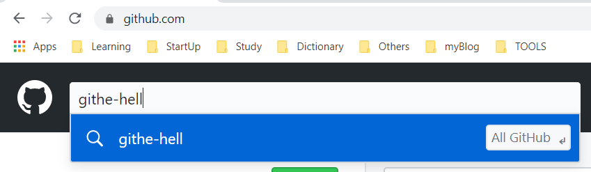 github.com 의 검색창에 githe-hell 이라고 검색해보자. gith-hell은 egoing의 저장소 이름이다.