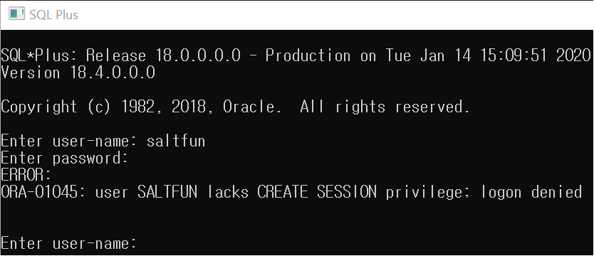SQL> GRANT DBA TO saltfun; saltfun에게 DBA 관리자 권한 부여