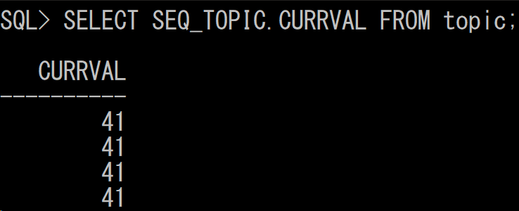 현재의 sequence 값을 알려면 SELECT SEQ_TOPIC.CURRVAL FROM topic; 그런데 결과가 이상하다.