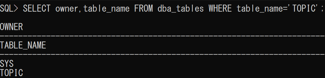topic 대신에 DUAL 을 써주면 한 개의 값만 출력된다.