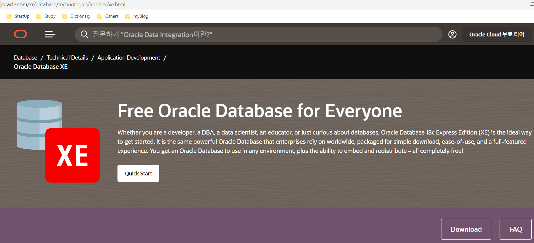검색어 : oracle express edition 18c